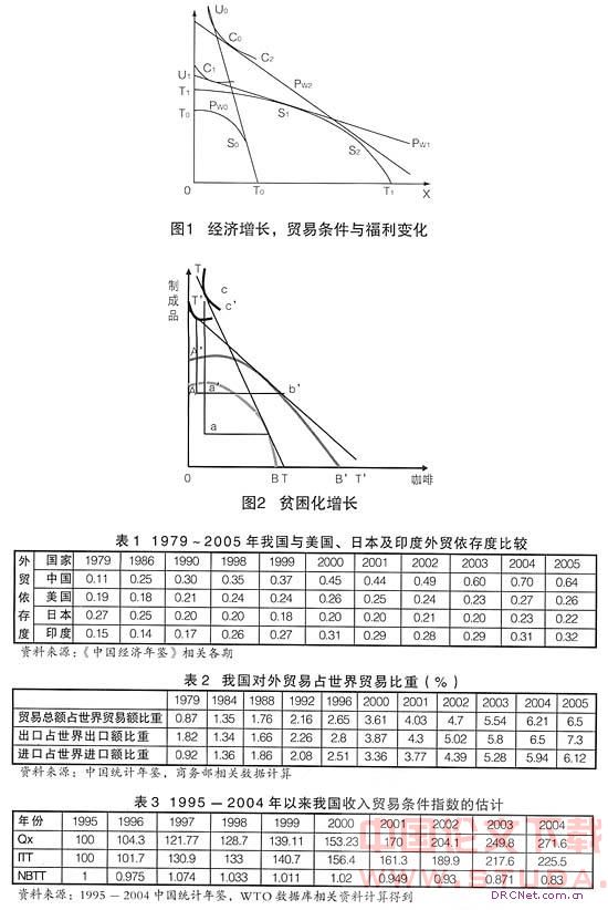 国际贸易理论自创建以来,主流经济理论均将贸易视为经济增长与出口扩张的发动机和国家福利改进的加速器。为实现经济的跨越式发展,各国尤其是欠发达国家纷纷依据贸易理论的基本原理来指导本国的对外经济发展战略,希望依靠本国比较优势占领更为广阔的世界市场,从而提高本国经济福利。1958年,巴格瓦蒂在扬弃传统国际贸易理论基础上,创造性地分析了国际贸易所带来的负面效果。他认为,一国国际贸易的不断发展,有可能使出口增长的收益与贸易条件恶化的损失相抵消,甚至后继损失超过初始的出口收益,从而导致该国经济出现贫困化增长现象。其理论被拉美等地区发展中国家的实践所证明。因此,如何走出贫困化增长的“陷阱”,成为广大发展中国家,特别是外贸高速增长的我国所必须面对的理论和实践并重的问题。本文将在巴格瓦蒂的理论模型基础上,引入要素假定来分析经济全球化条件下贫困化增长形成的机理和途径,并寻找如何避免贫困化增长的理论路径。