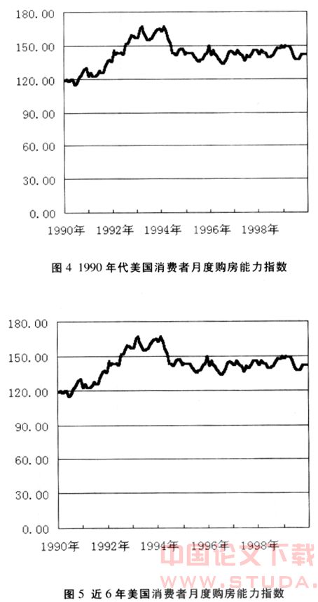 20世纪90年代开始的此轮房地产价格上涨,不仅涨幅较大(至今均价几乎翻了一番多),还大有捆绑宏观经济的趋势,这使得经济界对其高度关注。相关性分析显示,在美国经济总体明显衰退的2001年,房地产市场的发展使经济增长率提高了0.5个百分点,如果没有房地产市场保持繁荣,2001年美国经济的增长率就不是最终统计的0.3%,而是全年负增长。