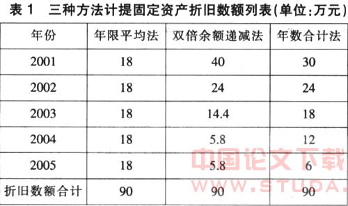 但是,应该清醒地认识到,加速折旧法本身如果不考虑资金的时间价值,在规定相同的折旧年限情况下,应提折旧总额相同,固定资产使用期满折旧总额相等。也就是说,与平均年限法相比,其实加速折旧法并不加速。为了方便说明问题,可以从以下案例可以一目了然。