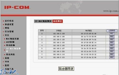 我们把网卡MAC地址与IP地址一一绑定,再配上电脑端防火墙的设置,基本上就可以避免内网的攻击了,还可以把路由器上的限速限连接数功能打开。