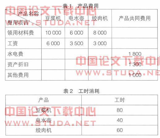 某公司是生产小家电的小型企业,生产产品有豆浆机、绞肉机、电水壶等,2008年12月生产豆浆机、电水壶各200台,绞肉机100台,发生以下生产产品的费用(见表1),生产产品消耗工时(见表2)。