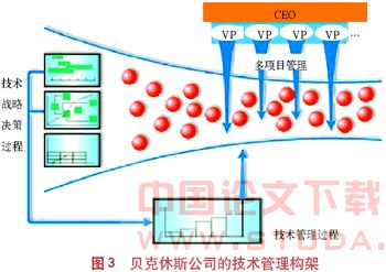 贝克休斯公司为了确保其在石油工具、完井、泥浆、电缆测井、钻头等8个专业领域的技术领先优势,明确了以主管各事业部的高级副总裁直接负责技术管理的构架,如图3所示。