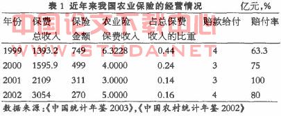农业保险是指专为农业生产者在从事种植业和养殖业生产过程中遭受自然灾害和意外事故造成的经济损失提供保障的一种保险。我国作为农业大国,农业是整个国民经济的基础,但我国农业是弱质产业,是农业灾害较重的国家。例如2002年全国农业受灾面积达47119千hm2,成灾面积达27319千hm2。自然灾害已经严重威胁农业生产,也损害了农民的正常生产生活,一旦遭受自然灾害或发生意外事故,仅靠单家单户的力量根本不能解决问题。目前农业实行家庭联产承包责任制后,单户农民成为风险的主要承担者,生产规模小,分布分散,对各种风险的抵御能力低下。但目前的状况,一方面,农业保险作为有效的风险转移管理办法,能够很好为农民的生产经营提供保障,农业和农村经济的发展迫切需要农业保险的支持和保护,我国农业保险具有潜在的发展力和巨大的市场空间;但另一方面,由于我国农业科技发展水平不高,没有形成规模化生产,单户的小规模生产使得农业生产成本较高,农民收入很难提高,农民可支配收入少使得农民对相对较高费率的农业保险望洋兴叹,旺盛的需求在目前各种矛盾的冲突下却得不到满足,并导致目前我国农业保险供给的不断萎缩,我国的农业保险开始于20世纪50年代。中途因”左”倾思想的误导,1985年被迫停办,1982年重新开始尝试。