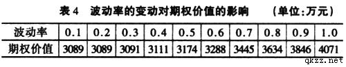 影响。假设项目投资费用和出租价格的变化率分别为+5%、+10%、+15%、-5%、-10%。不确定性因素的变动对期权价值的影响情况,见表3。